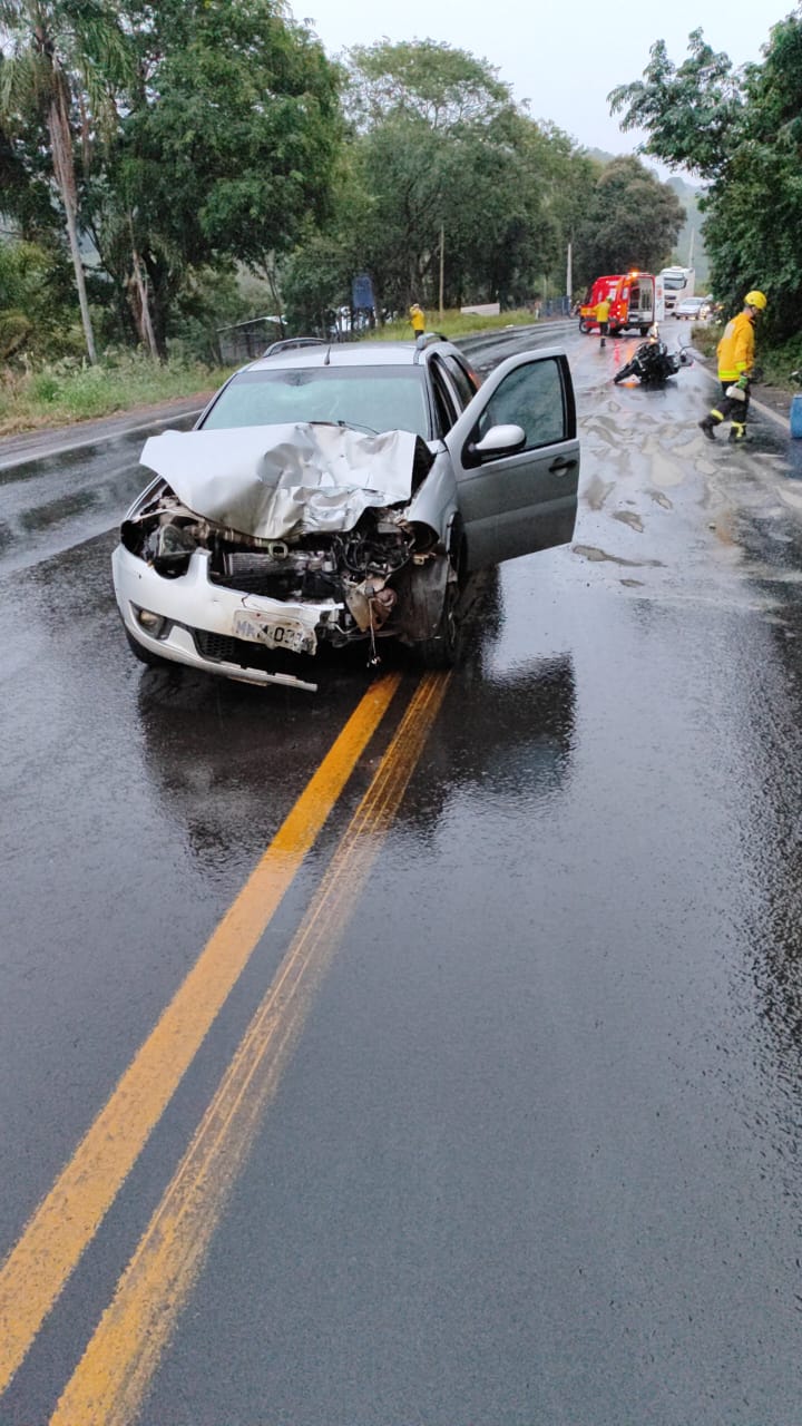 O Corpo de Bombeiros atendeu um acidente de trânsito envolvendo um carro e uma moto, na SC 157, no município de Cordilheira Alta – SC. Atenderam a ocorrência guarnições do Corpo de Bombeiros de Chapecó e de Coronel Freitas.