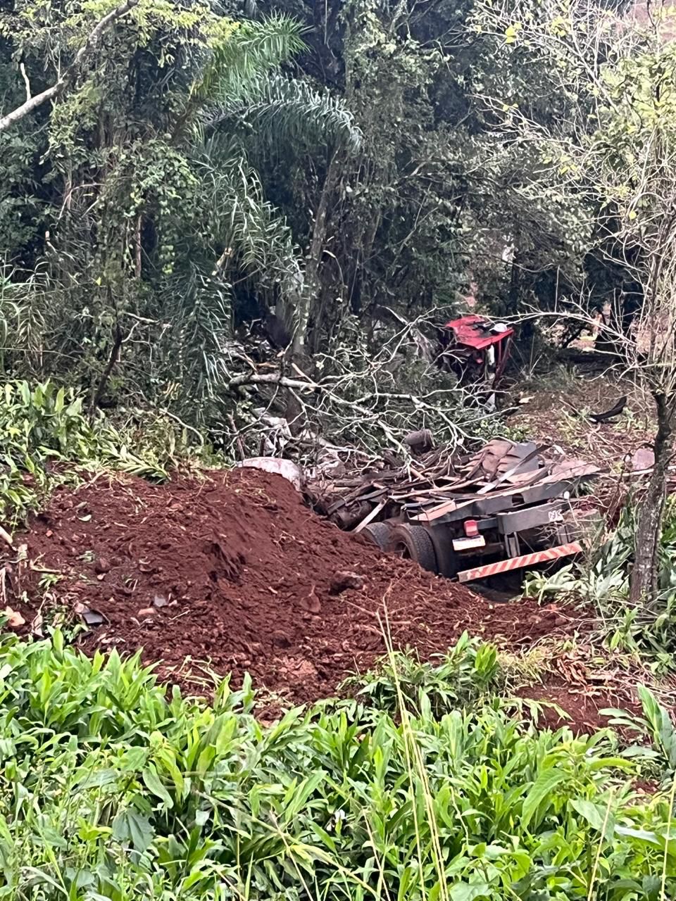 De acordo com as informações repassadas pela corporação, tratava-se de uma saída de pista envolvendo um caminhão Ford Cargo 1722, que foi encontrado completamente destruído no local. Populares que presenciaram a cena relataram que a vítima, única ocupante do veículo, já estava fora da cabine no momento da chegada das equipes de socorro.