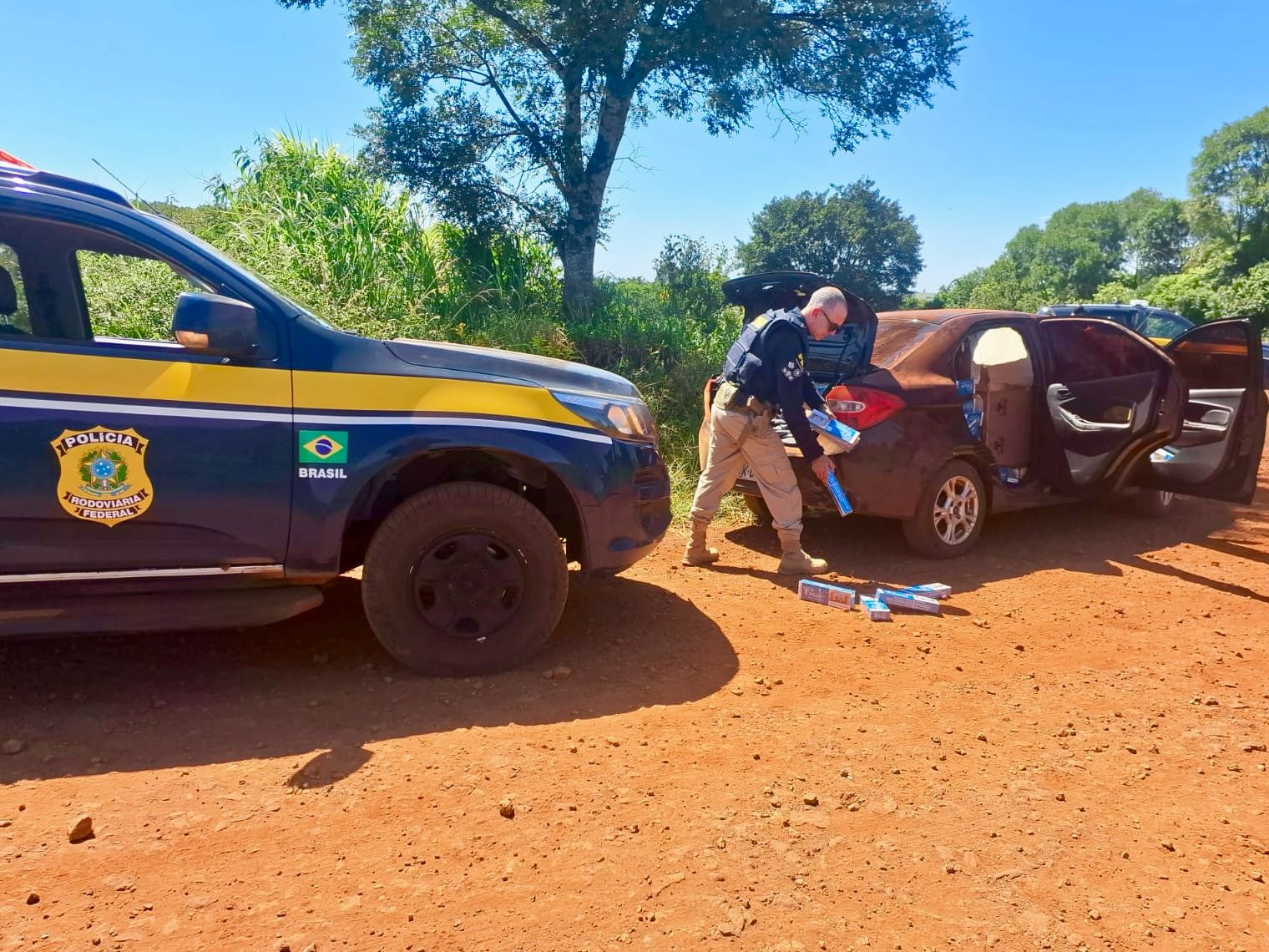 Na manhã deste domingo (16), a Polícia Rodoviária Federal apreendeu uma carga de 15 mil maços de cigarros de origem estrangeira que ingressaram no
