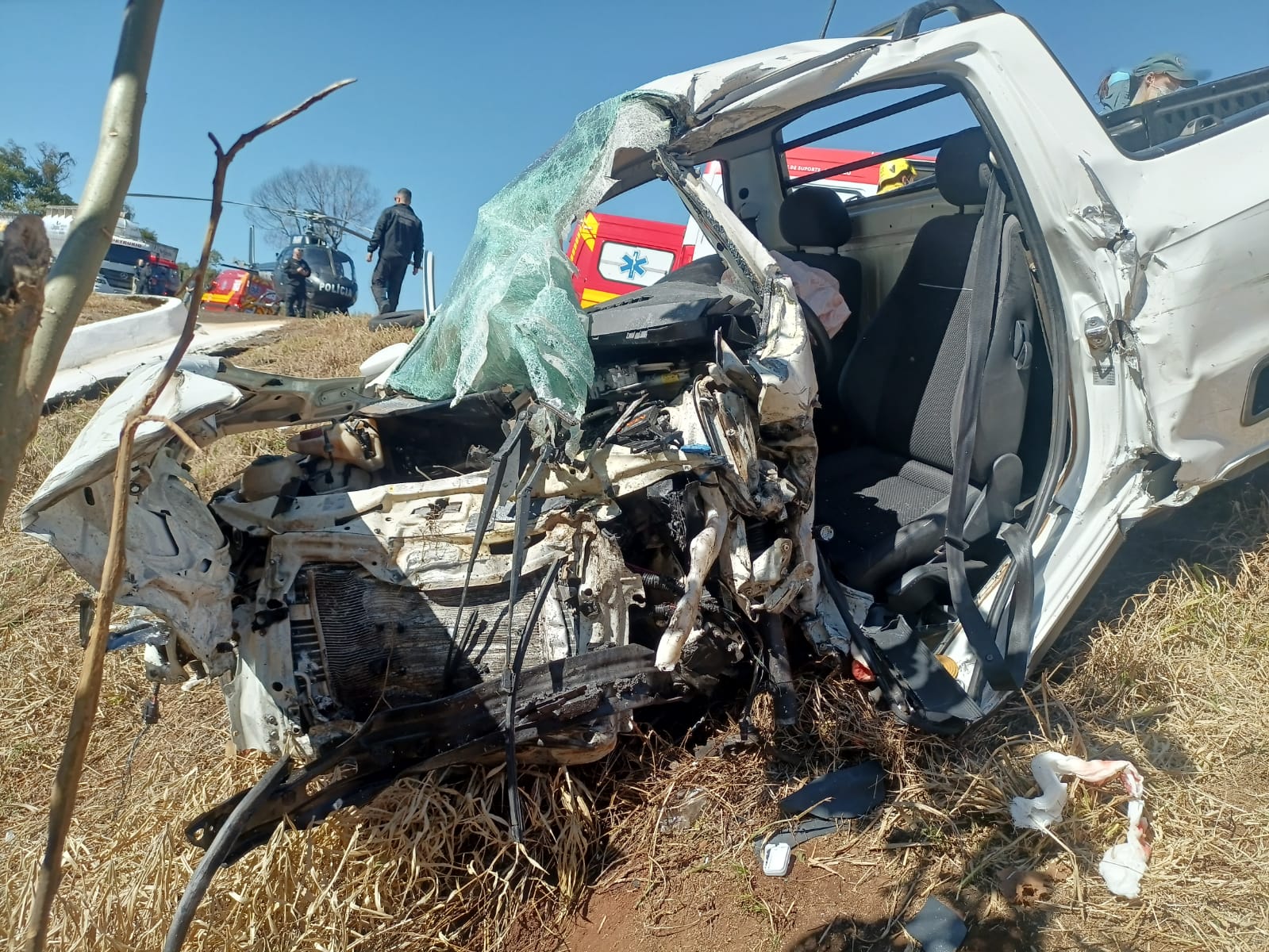 De acordo com o relatório do 14º Batalhão de Bombeiros Militar, o condutor da Saveiro — único ocupante do veículo — ficou encarcerado nas ferragens devido à violência do impacto. Foi necessário o uso de equipamentos hidráulicos de resgate para a retirada da vítima, que apresentava múltiplos ferimentos.
