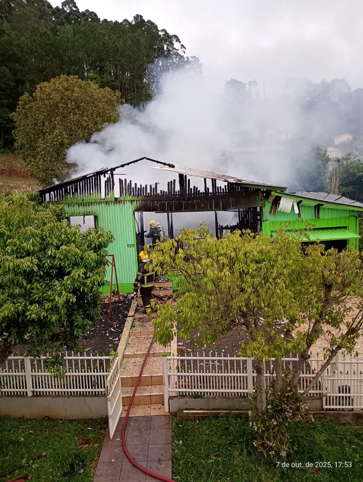 Na tarde desta terça-feira, 7 de outubro de 2025, por volta das 16h55, o Corpo de Bombeiros Militar foi acionado para atender a um incêndio em uma residência localizada na Rua 12 de Outubro, no município de Modelo. A ocorrência foi atendida pelas guarnições dos bombeiros de Modelo e Pinhalzinho.