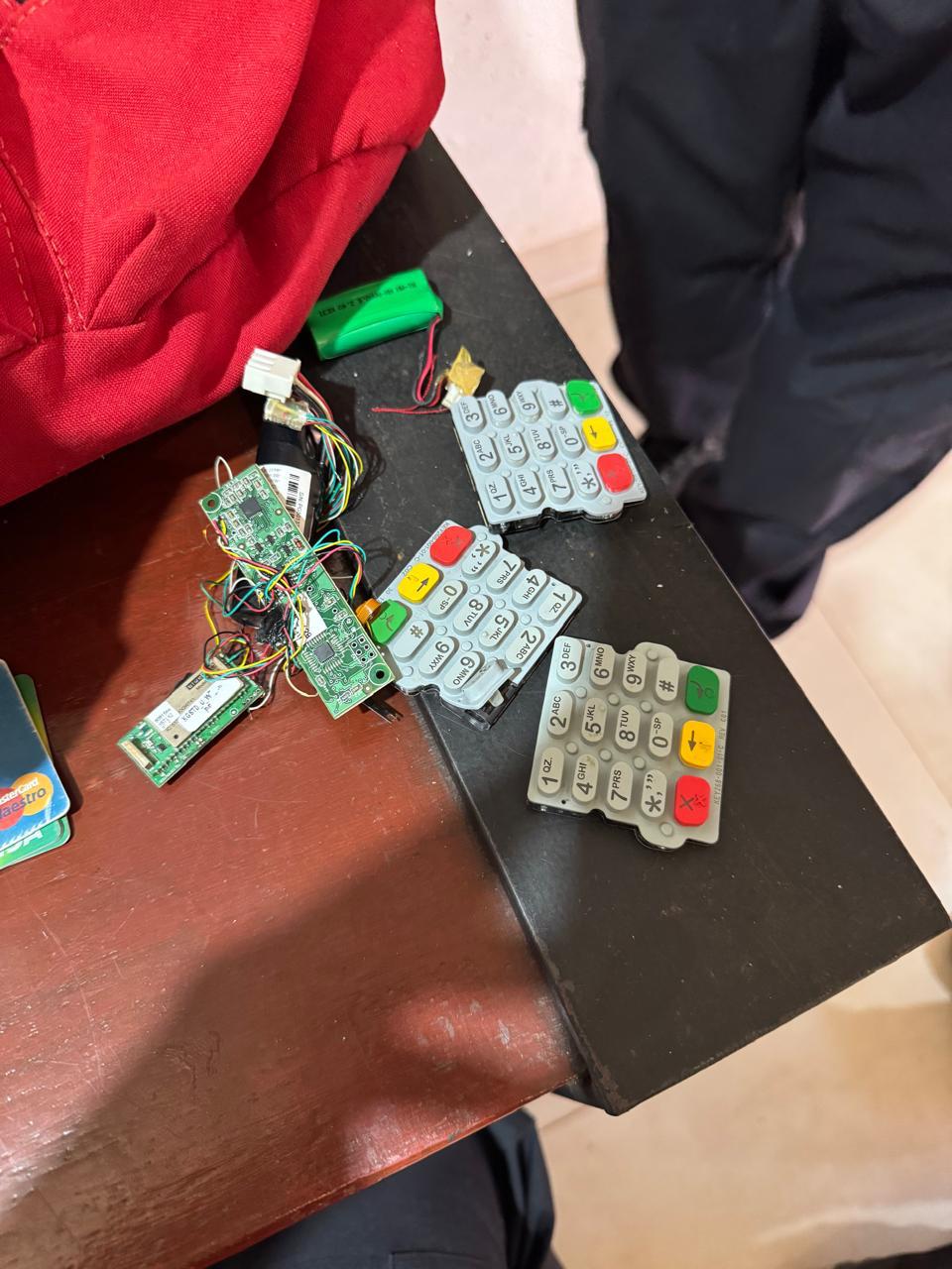 Após a retenção do cartão no caixa eletrônico, um integrante do grupo orientava a vítima a ligar para o número 0800 que constava em adesivo previamente colado pelos criminosos no caixa ou em local próximo. O terminal 0800 era operado por outro integrante do grupo investigado, que solicitava à vítima dados pessoais e a senha do cartão, enquanto outro integrante recolhia o cartão da vítima retido no caixa, passando a realizar movimentações financeiras.